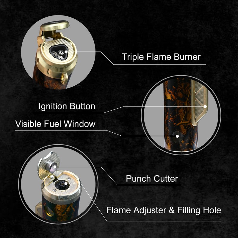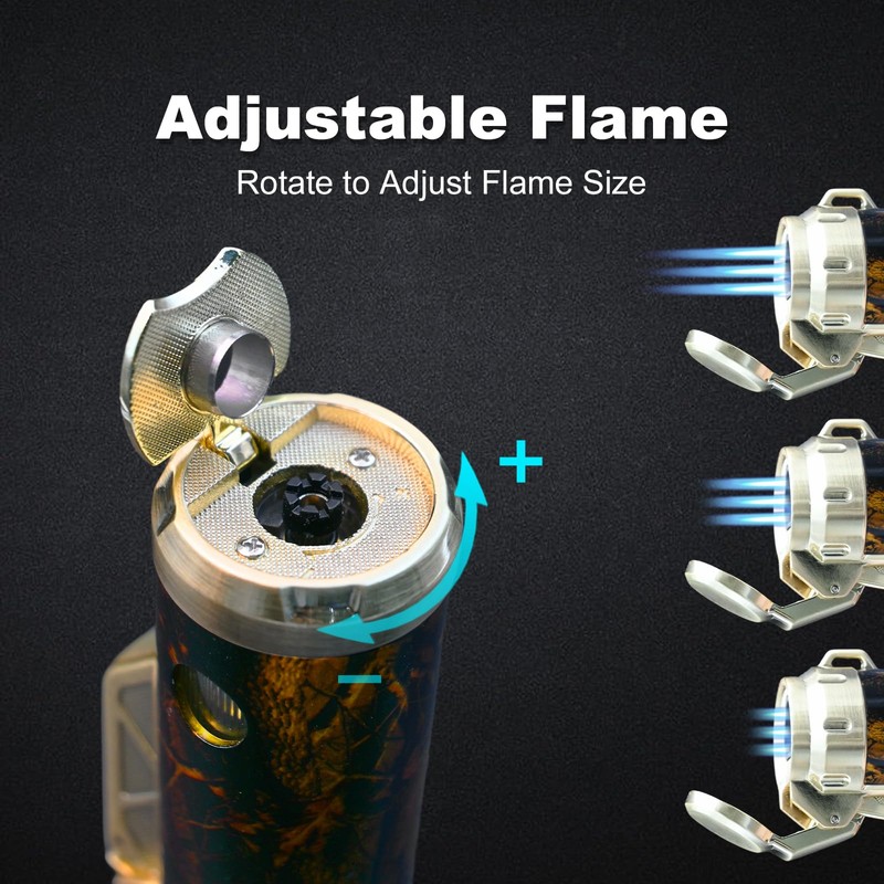 - 【Bottom Flame Control & Built-in Punch】Easily adjust the flame size with the bottom knob to meet your precise needs. Comes with a convenient 0.85mm collapsible punch for precision cutting to maintain structural integrity and take performance to a whole new level