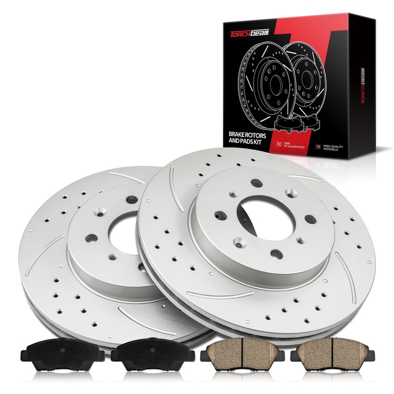 Torchbeam 3295+D1394 Front Drilled and Slotted Brake Rotor and Ceramic Brake Pad Set Kit for 2009-2013 Fit, Brake Pads and Rotors Kit, 6pcs