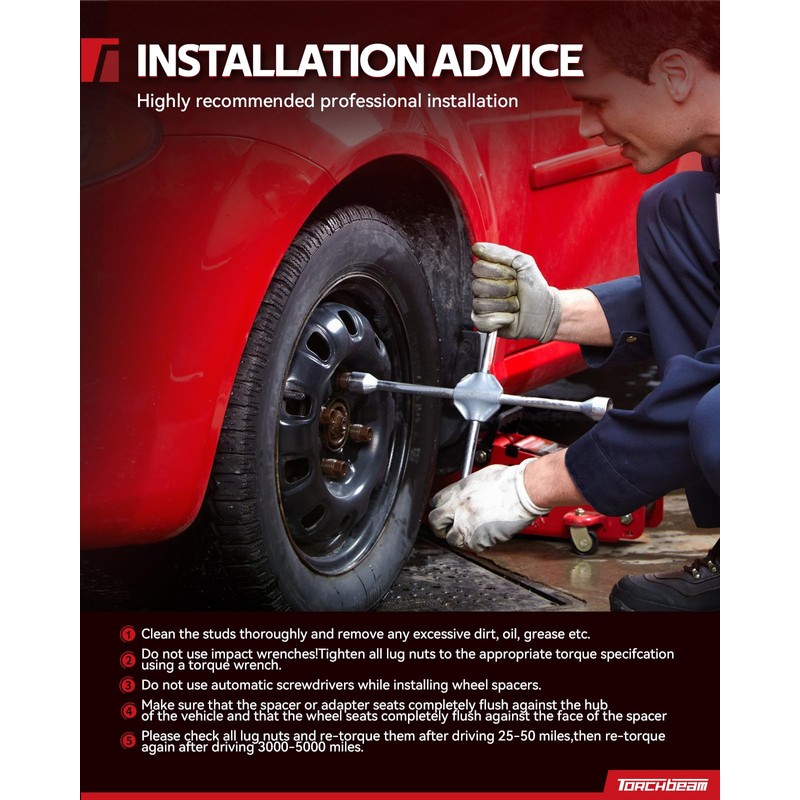 • 【Easy Installation】 Designed to ensure an exact fit, no modifications or drilling required, easy direct replacement installation. You can use the Fitment Guide to check the suitability of your model before purchase wheel spacer adapter.If you have any questions, please feel free to contact us, we will reply you within 24 hours.