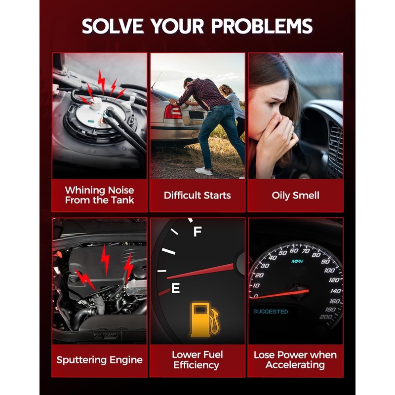 - Stronger Power: Built-in new technology turbo pump, stable fuel pressure, less noise, and more powerful power. Accelerates fuel atomization, thereby shortening engine starting time. It can solve the problems of poor acceleration of your car engine, easy stalling, and rattling fuel tank