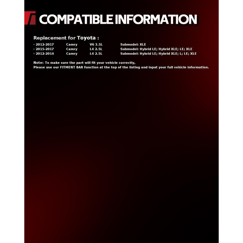 - 【FITMENT】 Torchbeam Struts Amortiguadores Delanteros Shocks Absorber Replacement for Toyota Camry 2012-2017 2.5L, Toyota Camry 2012-2017 3.5L.