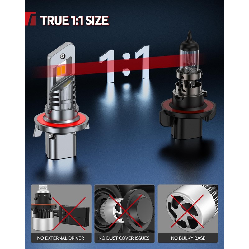 • 99.9% vehicle compatibility: Built-in intelligent driver and CANbus ready design make the T1S series H13 bulb compatible with 99.9% of vehicle systems. Reduce the risk of error warnings, radio interference, or flickering. For any product issues, simply contact us for help through Amazon messages