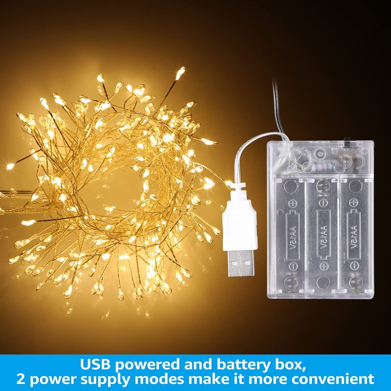 - 💡2 Power Options: This string light can be powered by either using 3AA batteries (not included) or connecting to a USB port. This light can connect to any equipment with a USB port like USB sockets, power adapters, portable power supplies, computers, or even laptops