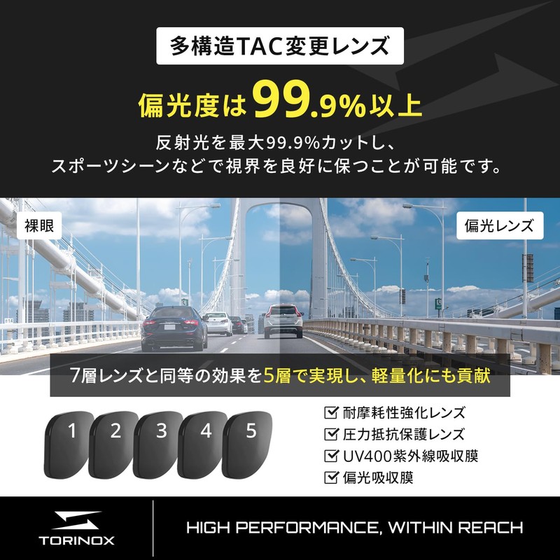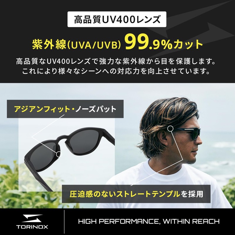 - Torinox sunglasses (polarized lenses, lightweight design) are sports and casual sunglasses that can be used in a wide range of occasions from everyday use to driving and fishing. It focuses on the balance of cost and quality (polarized lenses, UV400, lightweight design) and is easy to access, yet durable enough for long term use and style for driving, fishing, biking, driving, road biking, baseball, golf and more