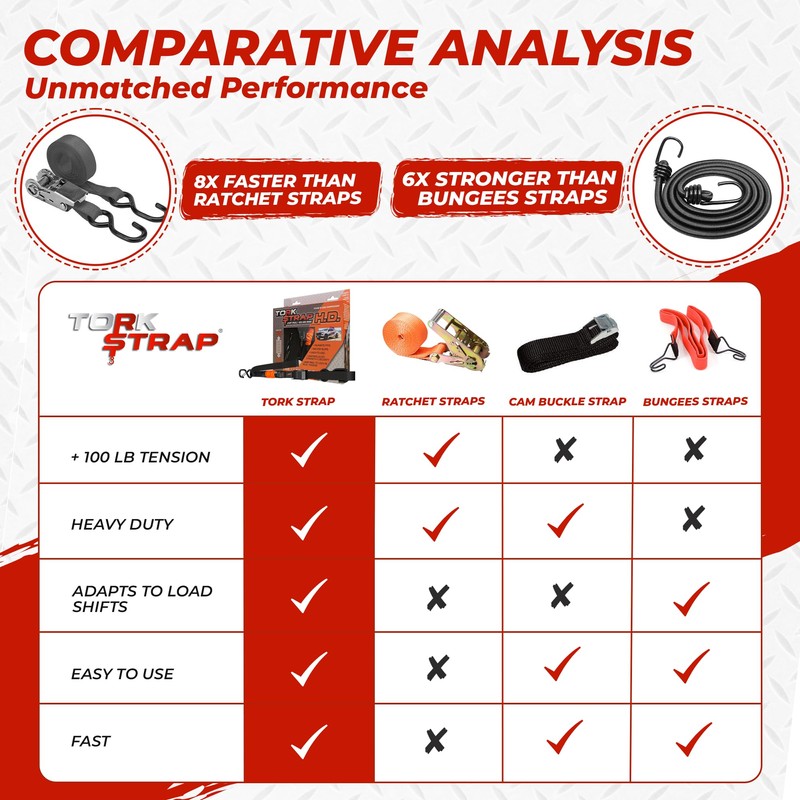 TorkStrap HD750 Bundle | 14' x 1.5'' Heavy Duty Spring Loaded Tie Down Straps with 24' Strap Extensions - 2,250LB Max Load - Just Pull Alternative to Ratchet Straps - Integrated Soft Loops (2-Pack)