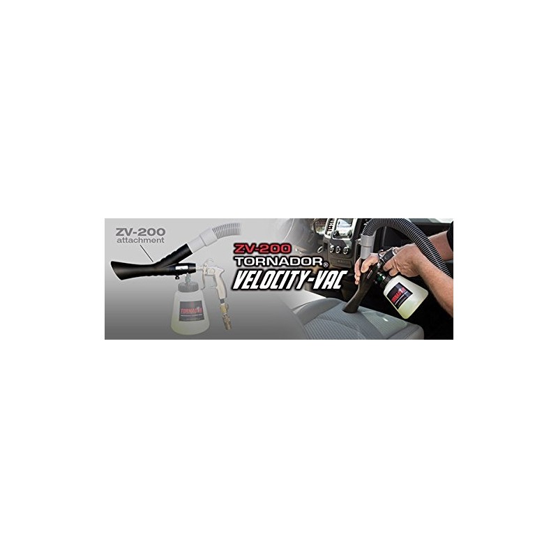 The Tornador ZV-2000 Velocity Vac is a innovative tool made to be equipped with theTornador Black. By combining the outstanding cleaning power of the patented Tornador Black with the innovative Velocity Vac, automotive detailing will never be the same again! Utilizing this tool will make automotive upholstery and other cleaning tasks quicker and easier than ever! Includes: Cone Vacuum Hose 34"; (2) tube adapters; (4) Silicone Tips (VT-120).