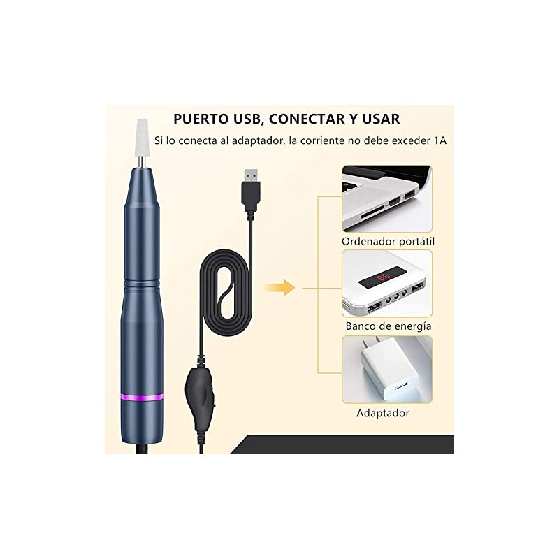 - Seguro y fácil de usar: La broca se puede cambiar fácilmente sin herramientas, simplemente extráigala e insértela. Interfaz USB estándar, simplemente conecte el cable de alimentación para comenzar a trabajar. ¡Te permite cuidar tus uñas fácilmente en casa!