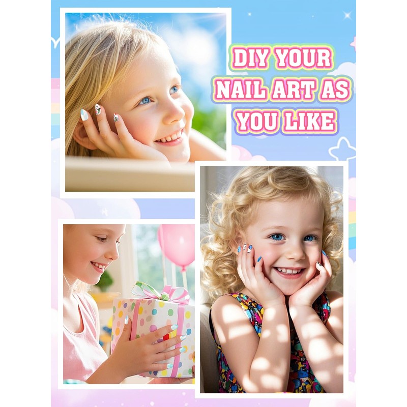 - PERFECT GIFT CHOICE This cute kids false nail set is great for birthdays, Christmas parties, themed events and much more. It is ideal for salon practice, daily wear or special occasions, allowing girls to express their style and elegance effortlessly. A perfect fashion accessory for daughters, nieces and friends children.