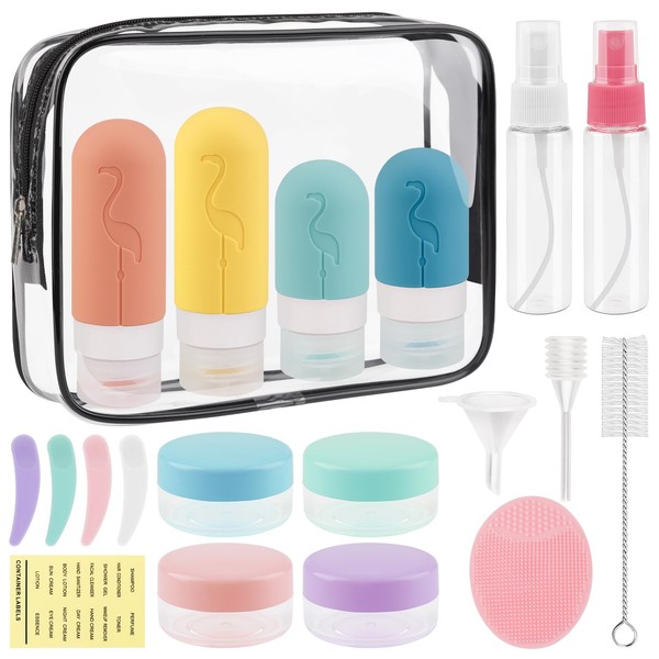 - Hecho de silicona y plástico de alta calidad, el juego de botellas de viaje viene en un juego de 20 piezas, incluyendo botellas vacías y tarros de varios tamaños. Pueden satisfacer tus diversas necesidades de almacenamiento de cosméticos o artículos de cambiador.