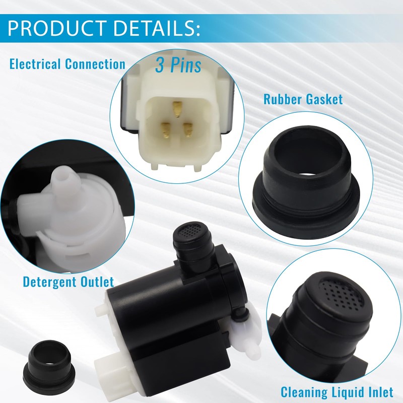 - Excellent Cleaning: This windshield washer pump provides an even and ample flow of water, effectively removing stubborn dirt and stains from the windshield, ensuring smoother wiper operation.