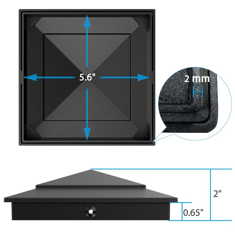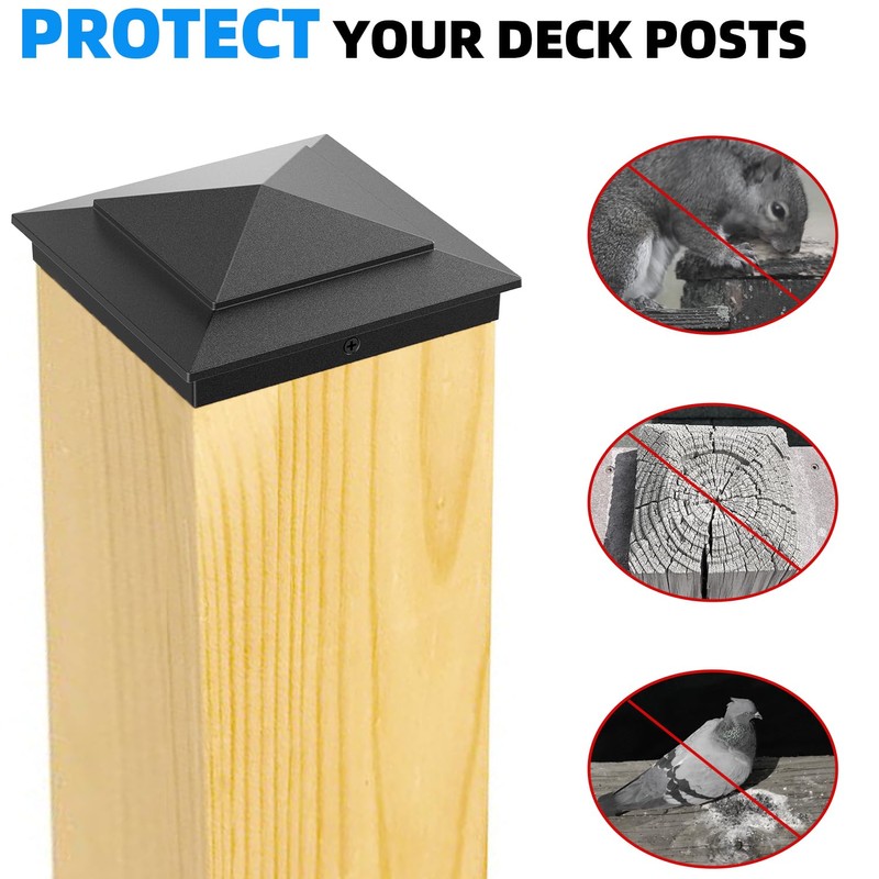 - The Last Post Cap You’ll Ever Need – Crafted from robust, weather-resistant aluminum with black coating, these 6x6 post caps are highly resistant to scratches, fading, and they will never crack. Unlike other pyramid post caps, ours feature smooth, rounded corners for a safe and comfortable touch—no sharp edges to worry about!