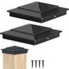 Toscoco 6" x 6" Aluminum Pyramid Post Caps Fits Actual 5.5" x 5.5" Wood Posts, 2-Pack Unbreakable Fence Post Caps for Cedar Fences Decks Mailbox Posts, Dual Layer Black Powder Coating