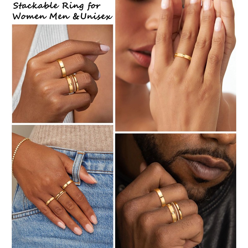 - Gold Rings that Don't Tarnish:Rings sizes 6 7 8 9 10 11(US Size),3-4mm width,common size fit for most women . The dainty gold rings can be used as wedding band, engagement ring, anniversary ring or promise ring, stackable rings, thumb rings, pinky rings, knuckle rings etc. Whether worn singly or in multiples, these ring set will accentuate your slender fingers, show your elegance and glamour. Gold rings for women can easily satisfy various daily wear
