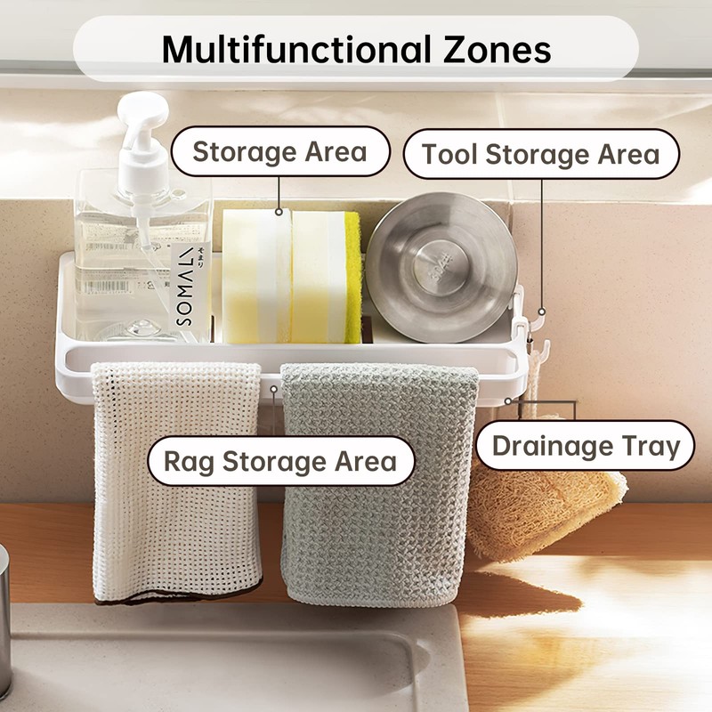 Toski Sink Organiser Hanging No Drilling Sponge Holder Sink White Sink Dish Towel Holder
