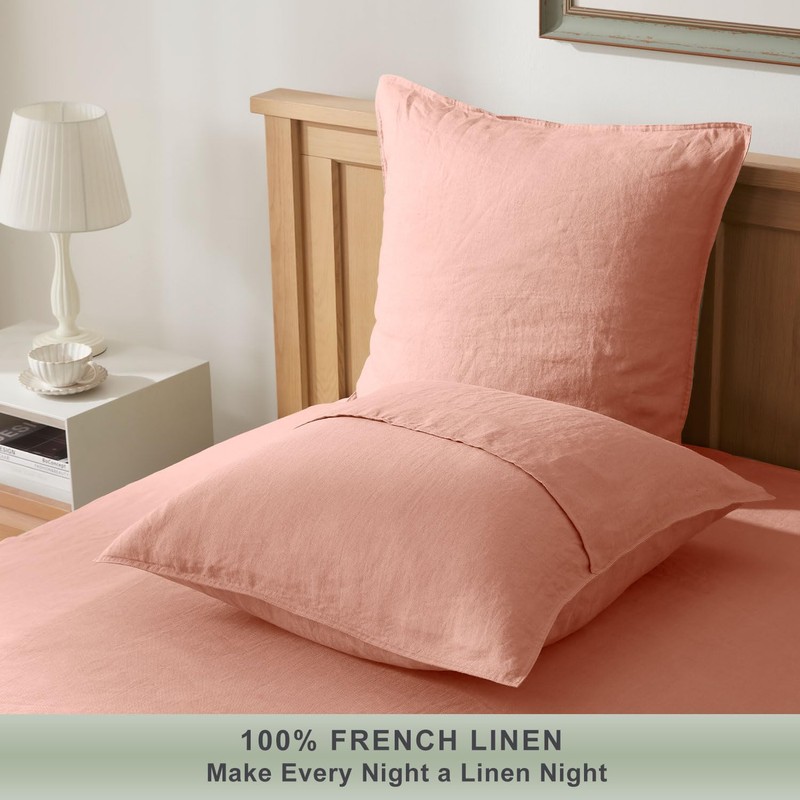 TOSMO 100% French Linen Pillowcase Euro Size, Linen Pillow Shams Set of 2, Stone-Washed Square Throw Pillow Case Envelope Closure, Soft and Durable Pillow Cases, 26" X 26", Rose Pink