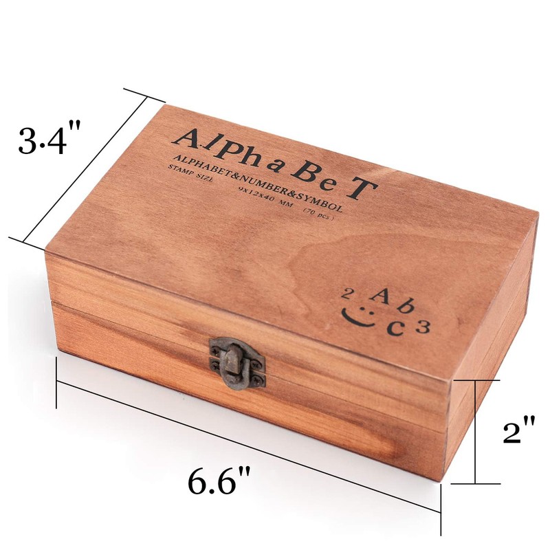 • Package includes 26 pieces capital letter stamps, 26 pieces lower case letter stamps, 10 numbers stamp and 8 symbol stamps; Total 70 pieces mini size stamps and 1 wooden storage box.