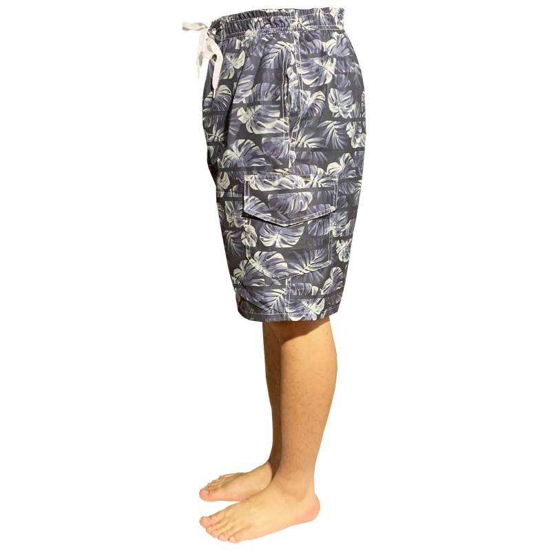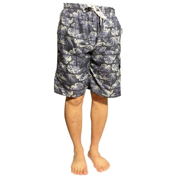Brand New Mens Board Surf Swimming Trunks With Mesh Lining Gray White Leaves  XL 30"-34"