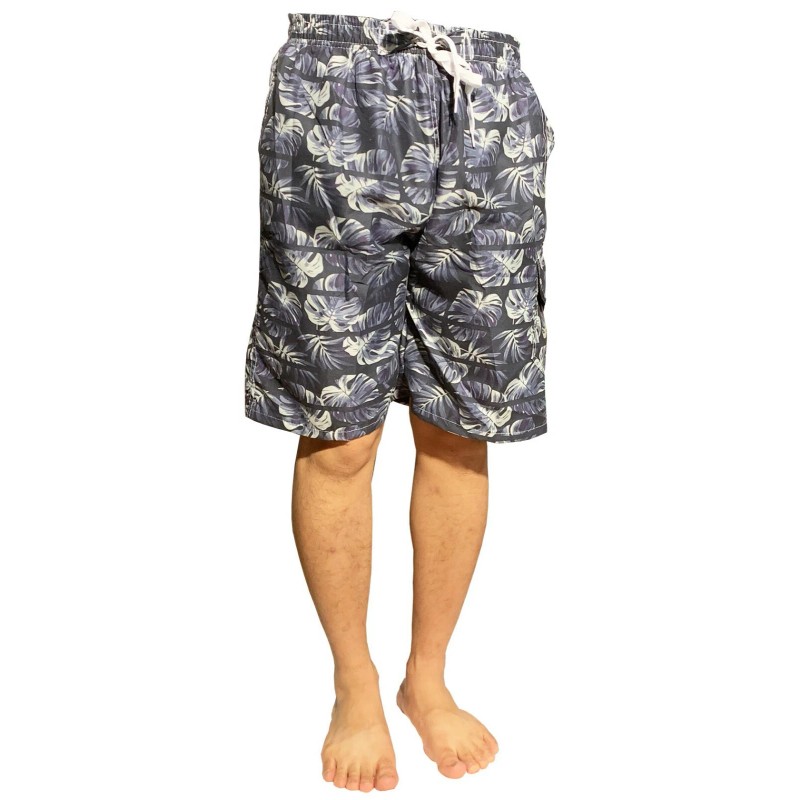 Brand New Mens Board Surf Swimming Trunks With Mesh Lining Gray White Leaves XL 30"-34".