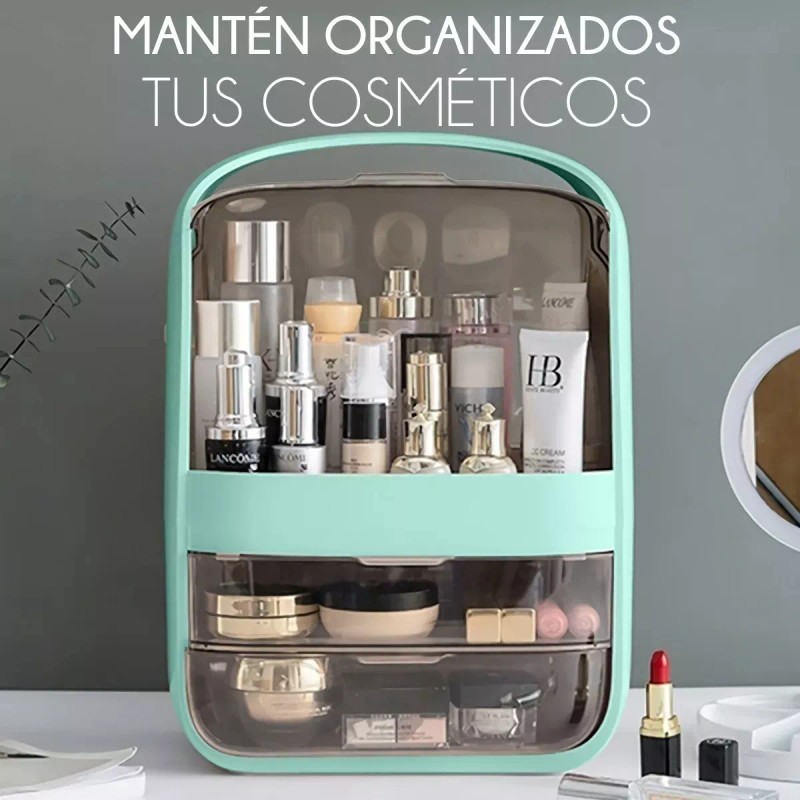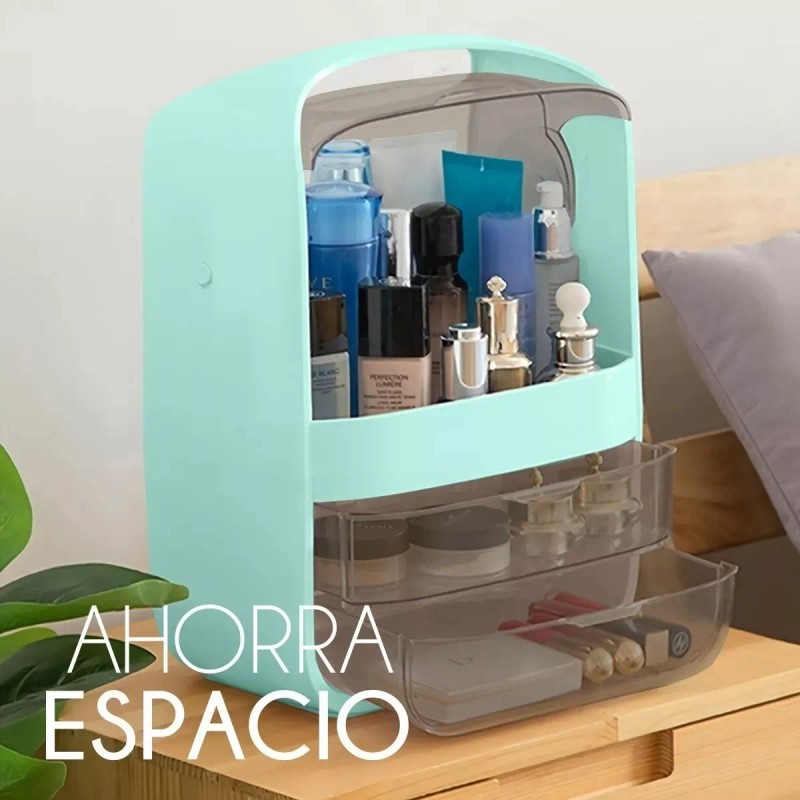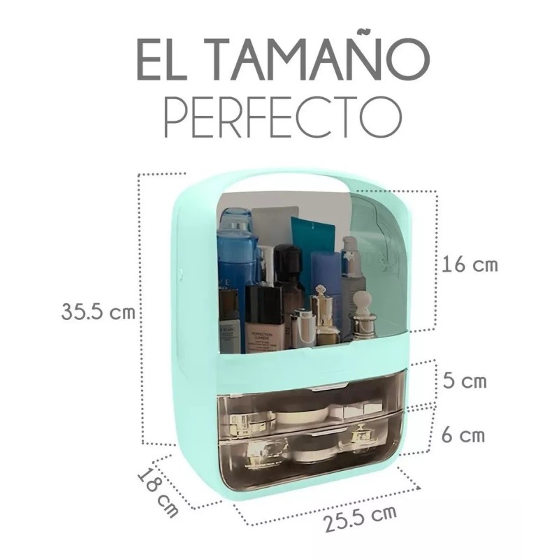 ••• Almacena todos tus cosméticos u otros productos en un solo lugar sin importar su forma o tamaños, mantenlos bien organizados y libres de polvo o agua. Puedes guardar tus joyas, brochas de maquillaje, cremas, lociones, paletas de sombras, labiales y demás cosméticos o productos para el cuidado personal o de tu piel. Elegante y compacta para que puedas ahorrar espacio y decorar tu habitación o cuarto de baño al mismo tiempo. •••