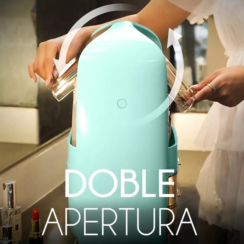 Caja Organizadora De Cosméticos y Maquillaje en forma de Capsula Con Tapa asa y doble apertura protege y resistente a salpicaduras.