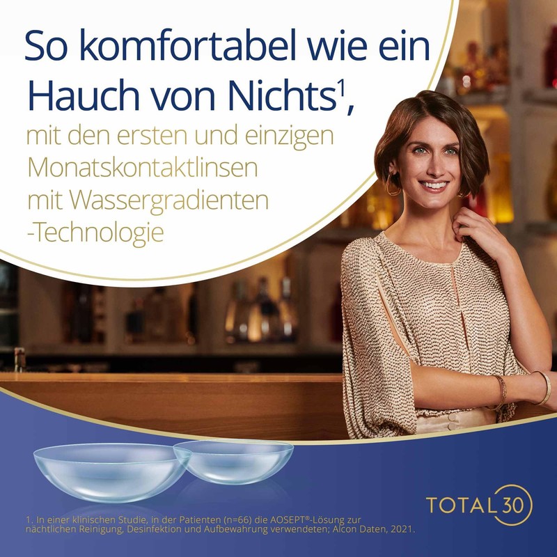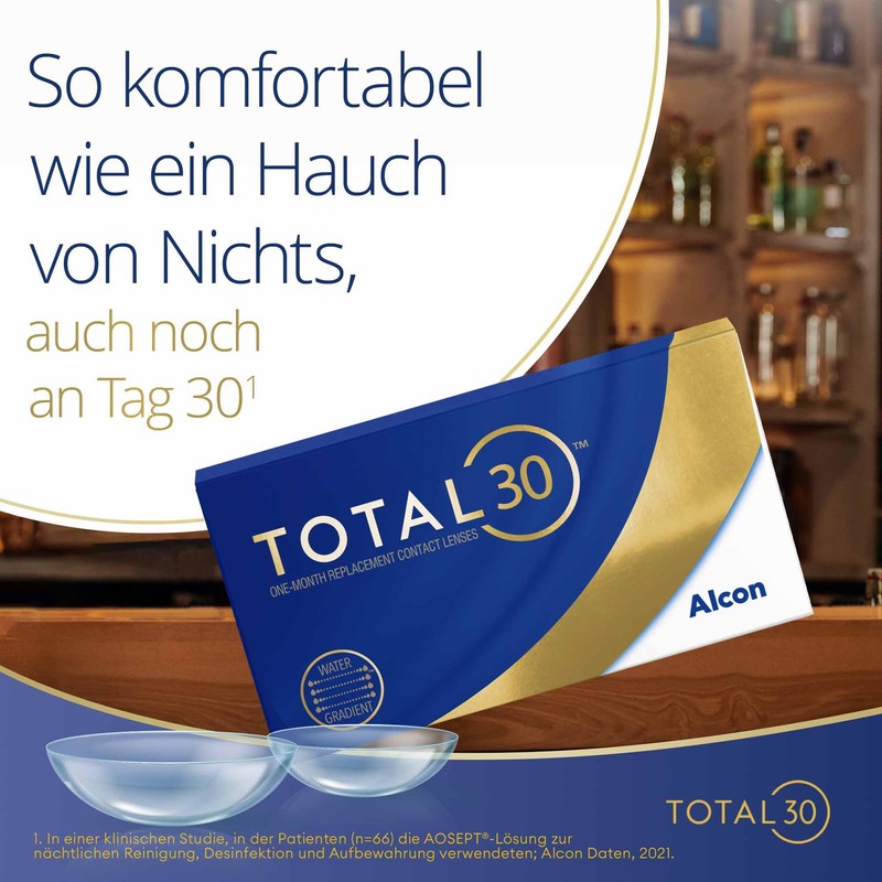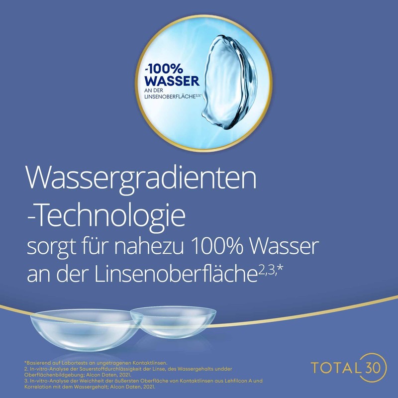 - The unique surface of the TOTAL30 contact lenses is resistant to deposits and ensures a clean lens [4-7, *]