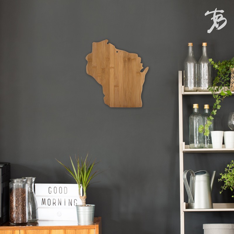 Celebrate life in America's Dairyland with the Totally Bamboo Wisconsin State Shaped Bamboo Serving and Cutting Board. This beautifully crafted board is in the shape of the great state of Wisconsin. The board is made of sustainably- sourced Moso bamboo, which is gentler on knives than plastic and easier to clean and care for than hardwood. It also works wonderfully as a serving platter for favorite meats, cheeses and all varieties of snacks— perfect for tailgating or entertaining at home! When it’s not being used in the kitchen or at get-togethers, the Wisconsin State Board also includes a hanging hole with a hang tie for an outstanding way to show your state pride on the wall of your home or office. It is built to last and easy to care for, simply hand wash and dry the board for the best results. Whether for yourself or the Wisconsin fan in your life, this board is sure to be hit!