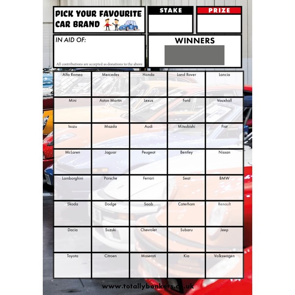 Totally Bonkers CAR Fundraising Scratch Cards - 40 SQUARE - 10 Pack - A6