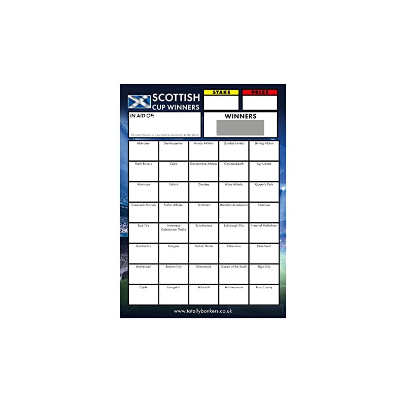 Totally Bonkers - Football Scottish Fundraising Scratch Cards - 40 SQUARE - A6 (148x105mm) -10 Pack - TB0003 - Blind Card