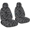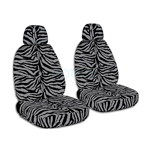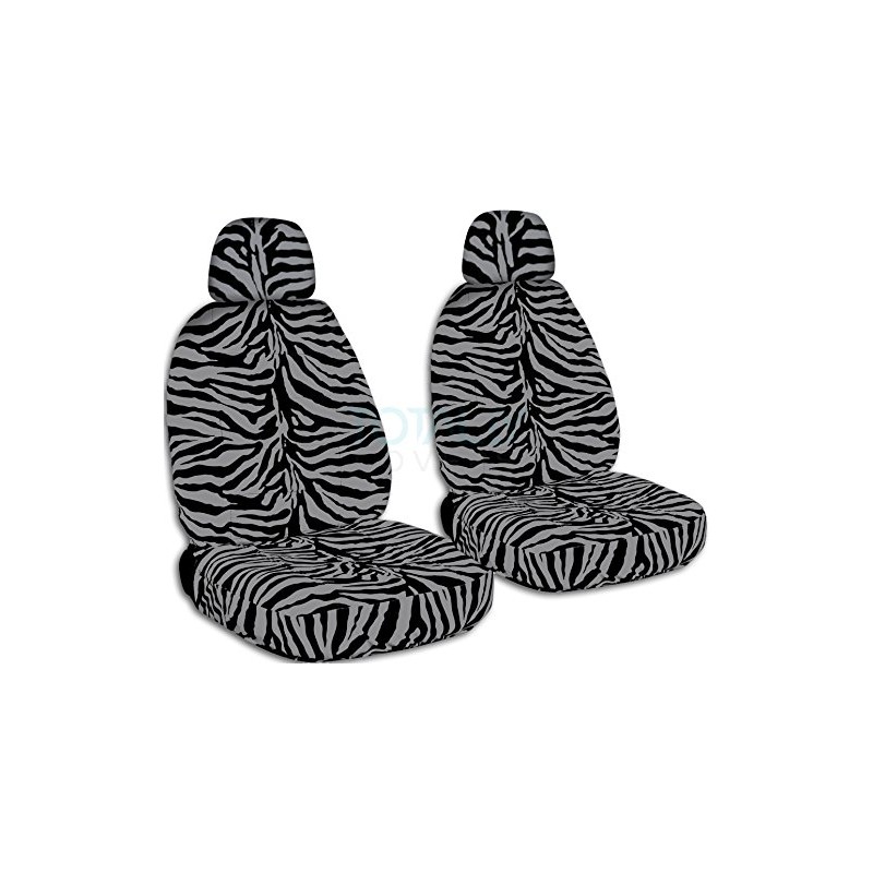 - A set of 2, front, silver zebra car seat covers with separate headrest covers. Universal size fitting most vehicles with bucket seats.