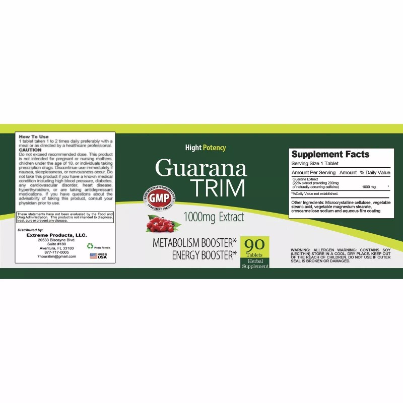 1.) Super Guarana Extract 1000mg Best 90 Tablets High Potency