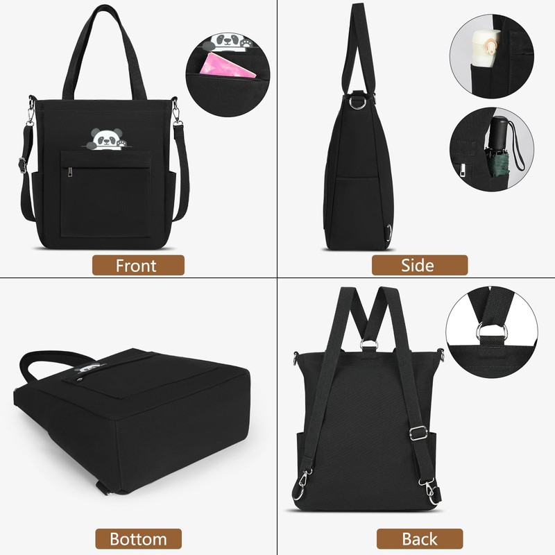 - 【4 Ways to Use】With its innovative strap design, this canvas bag offers four versatile ways to carry: handbag, crossbody bag, shoulder bag, and backpack. To use it as a backpack, simply thread the shoulder straps through the middle metal buckle and fasten them to the side metal rings.