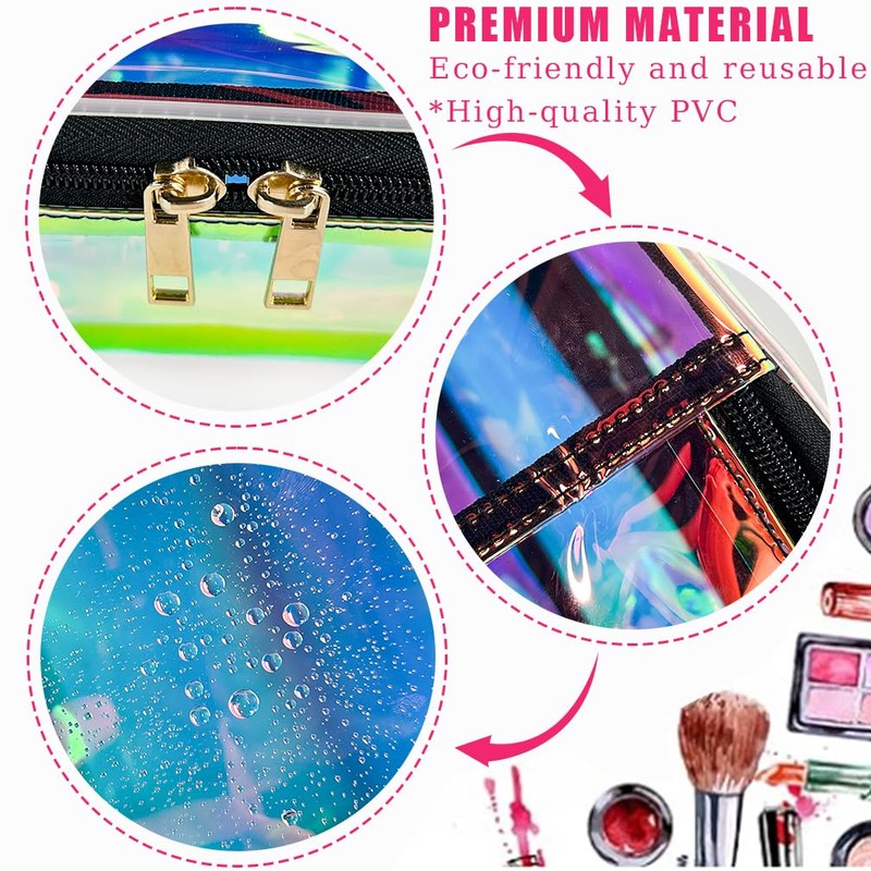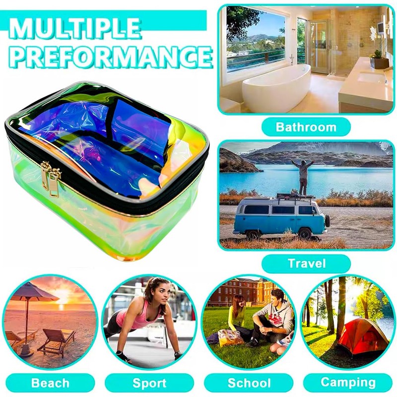 - đ·ăWide Range of UsesăOur transparent holographic cosmetic bag can not only be used as a storage bag,waterproof bag,gift bag,frequently used item bag,but also can be used to store cash,glasses,keys,portable batteries,etc.This waterproof and dustproof tote makeup bag keeps everything safe and prevents liquid leaks