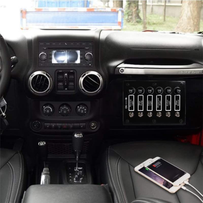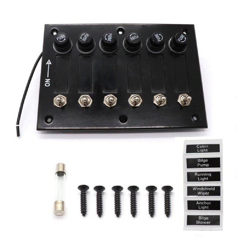 TOTMOX 12V/24V Waterproof 6 Gang Auto ON-OFF Rocker Switch Panel with Dual USB Socket, Charger, Voltmeter, Suitable for Boat, Marine, Yacht, Motorhome