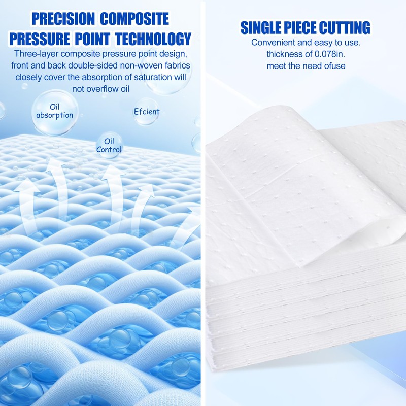 - Meltblown Polypropylene Absorption Core: Multi-layer meltblown construction traps oils, grease, and oil-based liquids 3X faster than standard pads. Precision ultrasonic bonding locks fibers without chemical adhesives – safe for garage floors and workshop tools.