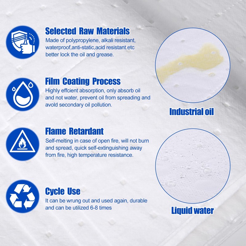 - Tear-Proof Industrial Durability: Meltblown fibers resist tearing even when saturated. Withstands heavy equipment weight and repeated use – no fraying edges or fiber residue left behind.