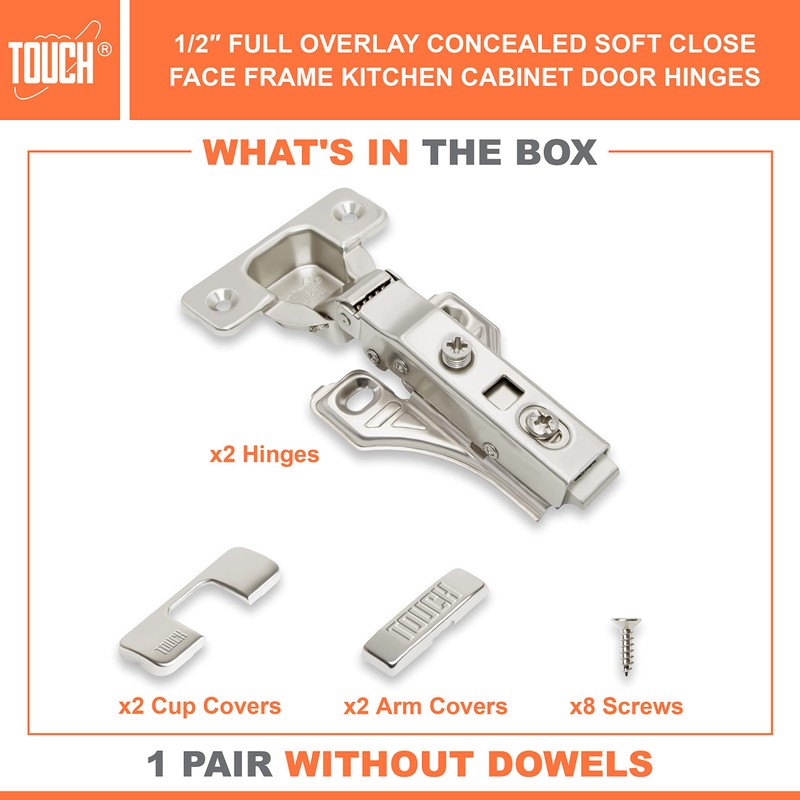 TOUCH Cabinet Hinges (1 Pair, 2 PCS) Face Frame Cupboard Door Soft Close Hinges 1/2" Inch Concealed European Clip-On Hinges for Kitchen Cabinet 3-Way Adjustable with Screws
