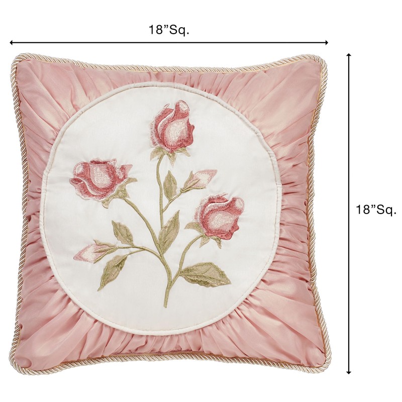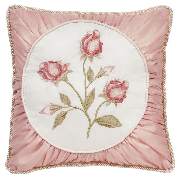 Touch of Class Blush Rose Embroidered 18" Square Pillow