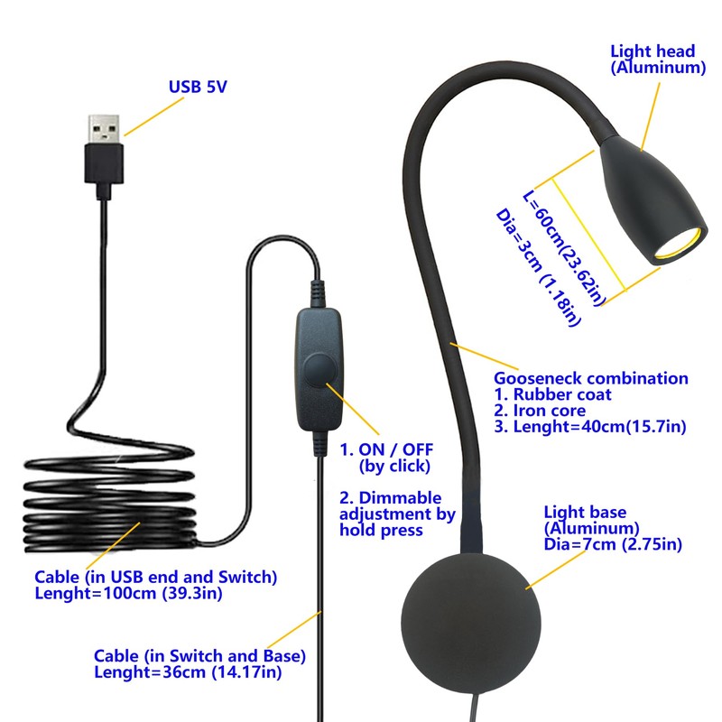 - DIRECTIONAL LIGHTING: Flexible Gooseneck tube ensures adjusting beam is facing the reading area needed, which enhance the lighting intensity