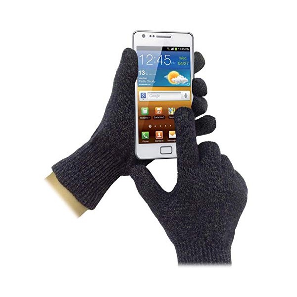 The latest TouchAbility touchscreen gloves feature genuine silver conductive threads woven throughout the entire glove, making them compatible with almost any smartphone, tablet or any other device with a capacitive touch sensitive screen. They provide a much needed barrier to the cold weather, whilst at the same time combining a superior level of functionality with a high tech futuristic look. Because the special conductive fibres are not restricted to just a couple of finger tips, you can use literally any finger or any part of your hand to control your phone. Made of a stretchy and soft material for a perfect balance of comfort and snug fit, they will keep your hands warm even in the coldest weather. Gone are the days of exposing your finger tips to the elements just because you need to answer the phone! Available in a black colour (with the conductive yarn providing distinctive silver highlights), and 2 sizes - small / medium which suits most ladies, and medium / large for most men.