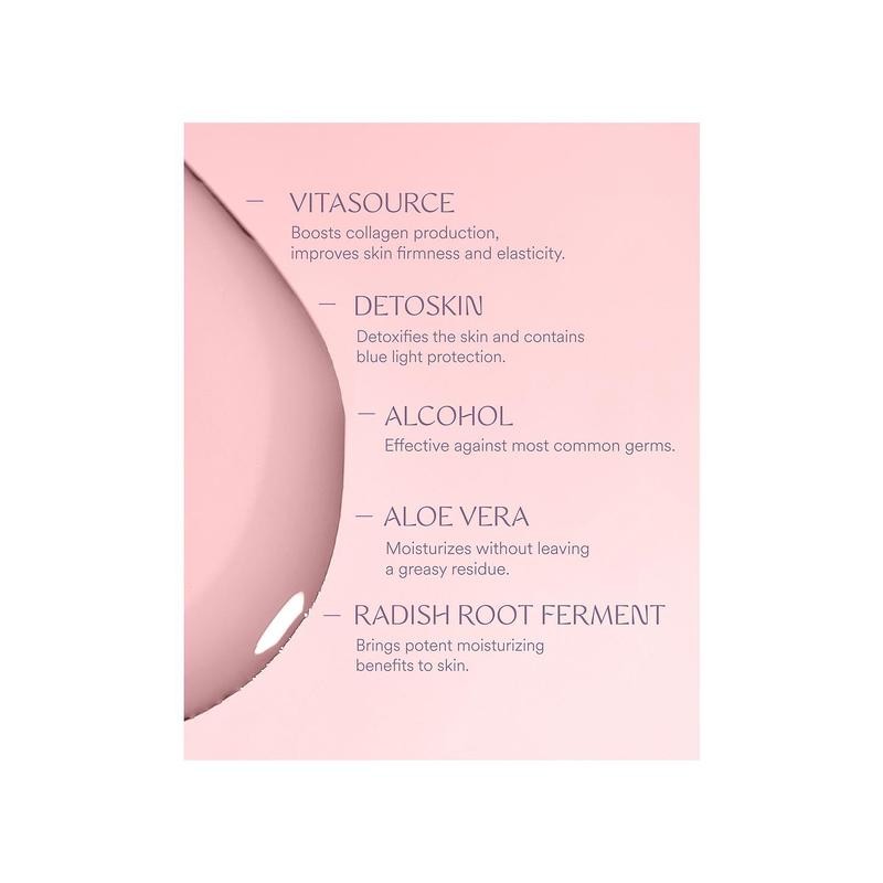 The result? A fine mist that is effective against most common germs while also replenishing moisture, boosting collagen, and firming