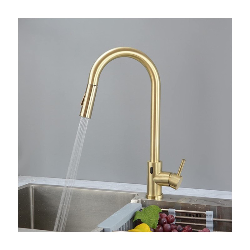 Touchless Kitchen Faucet, Stainless Steel Kitchen Sink Faucet with Pull Down Sprayer,High Arc Smart Motion Sensor Single Handle Kitchen Faucet with 2 Functions Sprayer, Deck Mounted,Black ( Color : Br