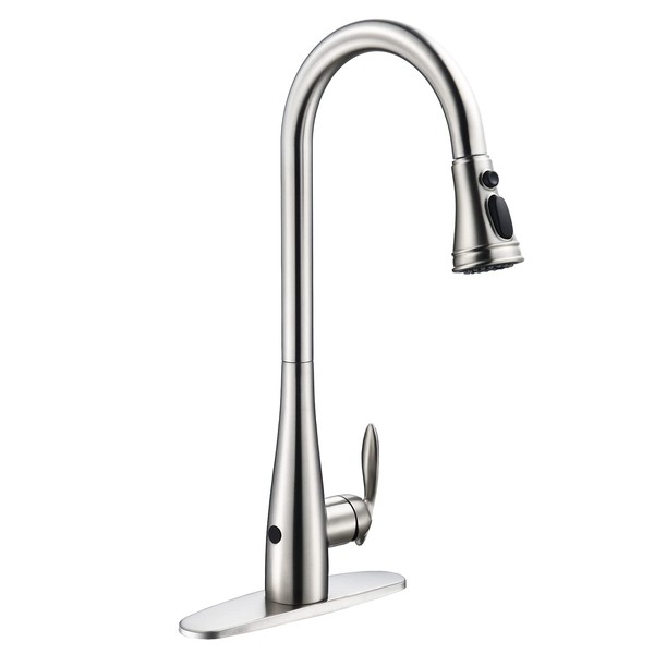 Touchless Kitchen Faucet with Pull Down Sprayer Brushed Nickel, Single Handle Motion Pull Out Kitchen Sink Faucet,One Hole/Three Hole 3-Function Kitchen Faucets,Stainless Steel