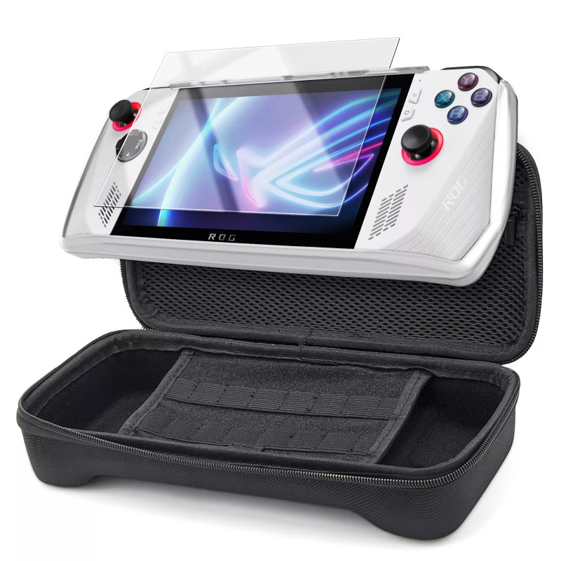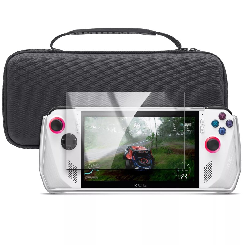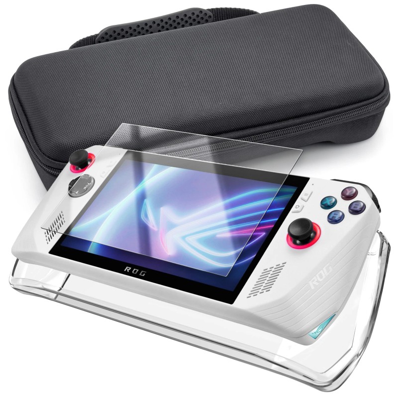 Clear Case with Glass Screen Protector and Hard Carry Bag � for ASUS ROG Ally Introducing the ultimate protection bundle tailored for your ASUS ROG Ally personal gaming device! We�ve combined a trio of essential accessories to ensure your device stays secure no matter where your gaming takes you. The clear fitted TPU case is designed to show off your device while providing a layer of defense against everyday knocks and bumps. Not only that, this case comes with a clever kickstand that lets you enjoy hands-free gaming, adding convenience to your sessions. A genuine UHD tempered glass MagGlass screen protector maintains crystal-clear visuals and guards your device�s screen against pesky scratches and fingerprints. Last but not least, we�ve included a rugged hard clamshell carrying case made from durable EVA material. This sturdy case is your go-to solution when you�re ready to hit the road with your gaming gear. It shields your ASUS ROG Ally and offers a secure spot for safe transportation, ensuring you�re always ready for your next gaming adventure. Whether you�re at home or on the road, this protection bundle for ASUS ROG Ally has you covered from every angle. What�s Included: EVA hard clamshell carry case TPU fitted case with kickstand MagGlass tempered glass screen protector