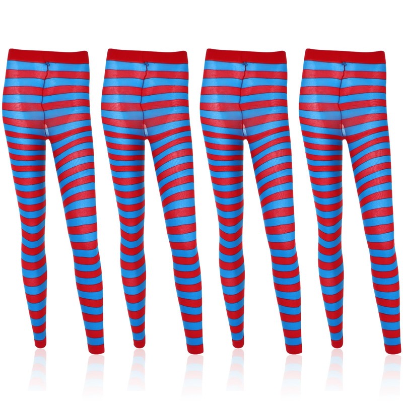 Toulite 4 Pairs Striped Tights for Women Stretchy Legging High Tights Stockings Cosplay Costume Party(Blue, Red)