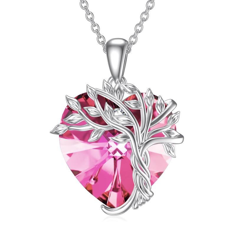 - 【Sterling Silver Heart Pink Crystal Necklace】 This celtic tree necklace is made of 925 sterling silver with 14k white gold plated, lead-free, nickel-free. Suitable for people with sensitive skin. Heart pink tourmaline october birthstone necklace.