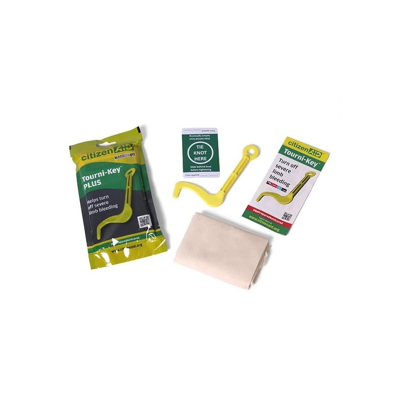 - Each single-use pack comes with a Tourni-Key, a triangular bandage, an anti-pinch card and an instruction leaflet
