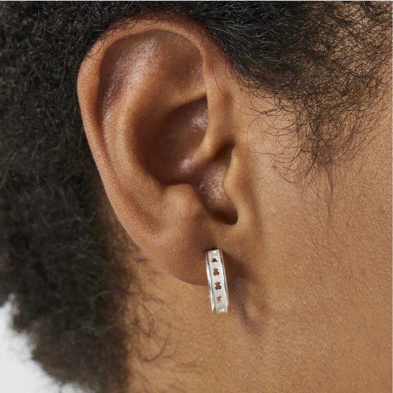 TOUS Aretes de Plata de Primera Ley para Mujer con Motivo de Oso, con Cierre Criollo de 11 mm de Diámetro, Atemporal y Elegante, Colección Bear Row