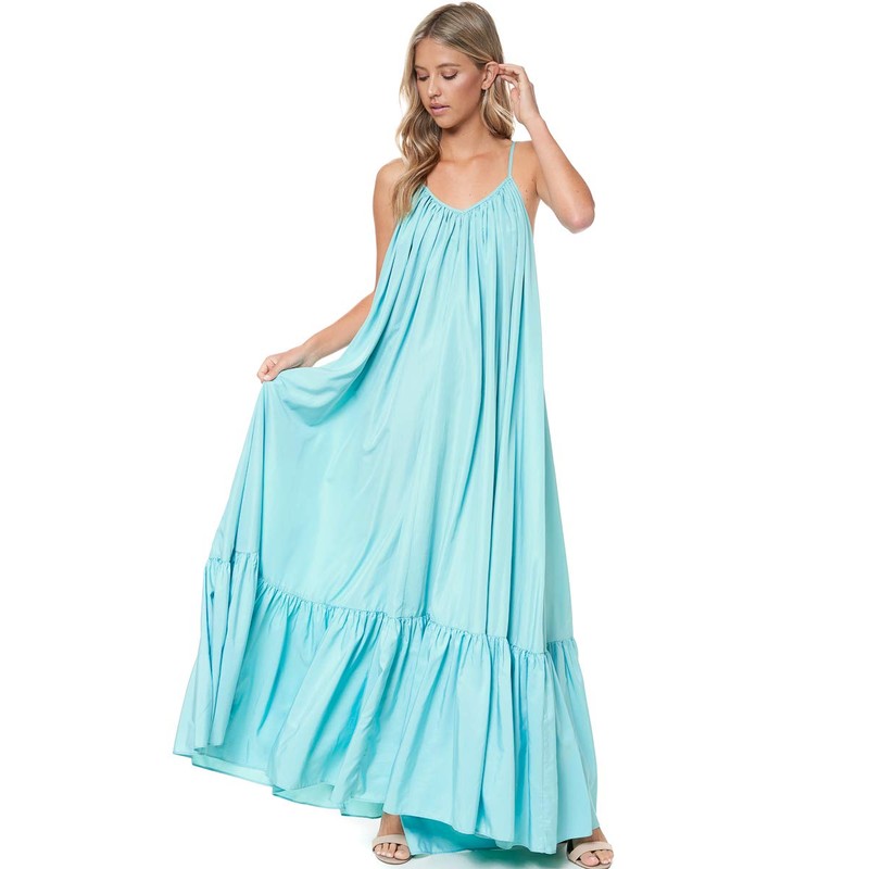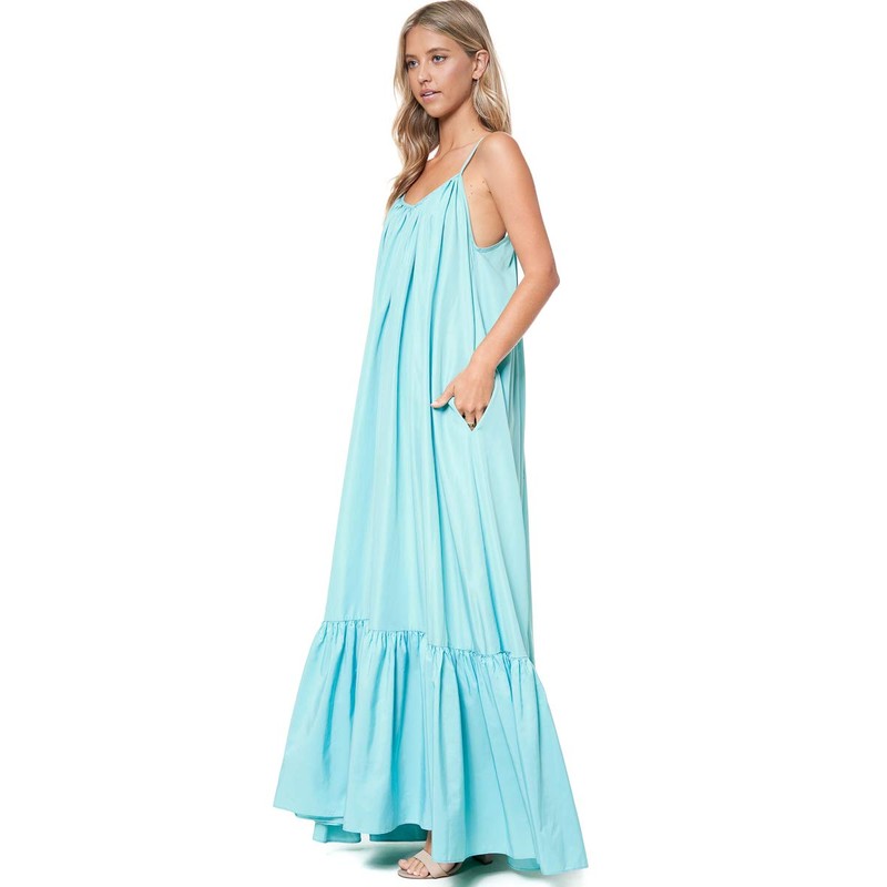 Tov Elegance A-Line - Vestido largo con correa de espagueti, Verde agua, M