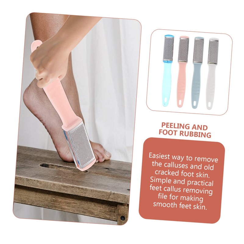 Foot File With a handle design, easy to hold and save man power and for long time use.Foot Scrubber The item is a and simple foot file, which made of stainless steel material, and can be used to remove dead skin and smooth rough feet almost instantly