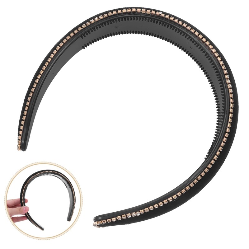 -Color:Black rhinestone headband women